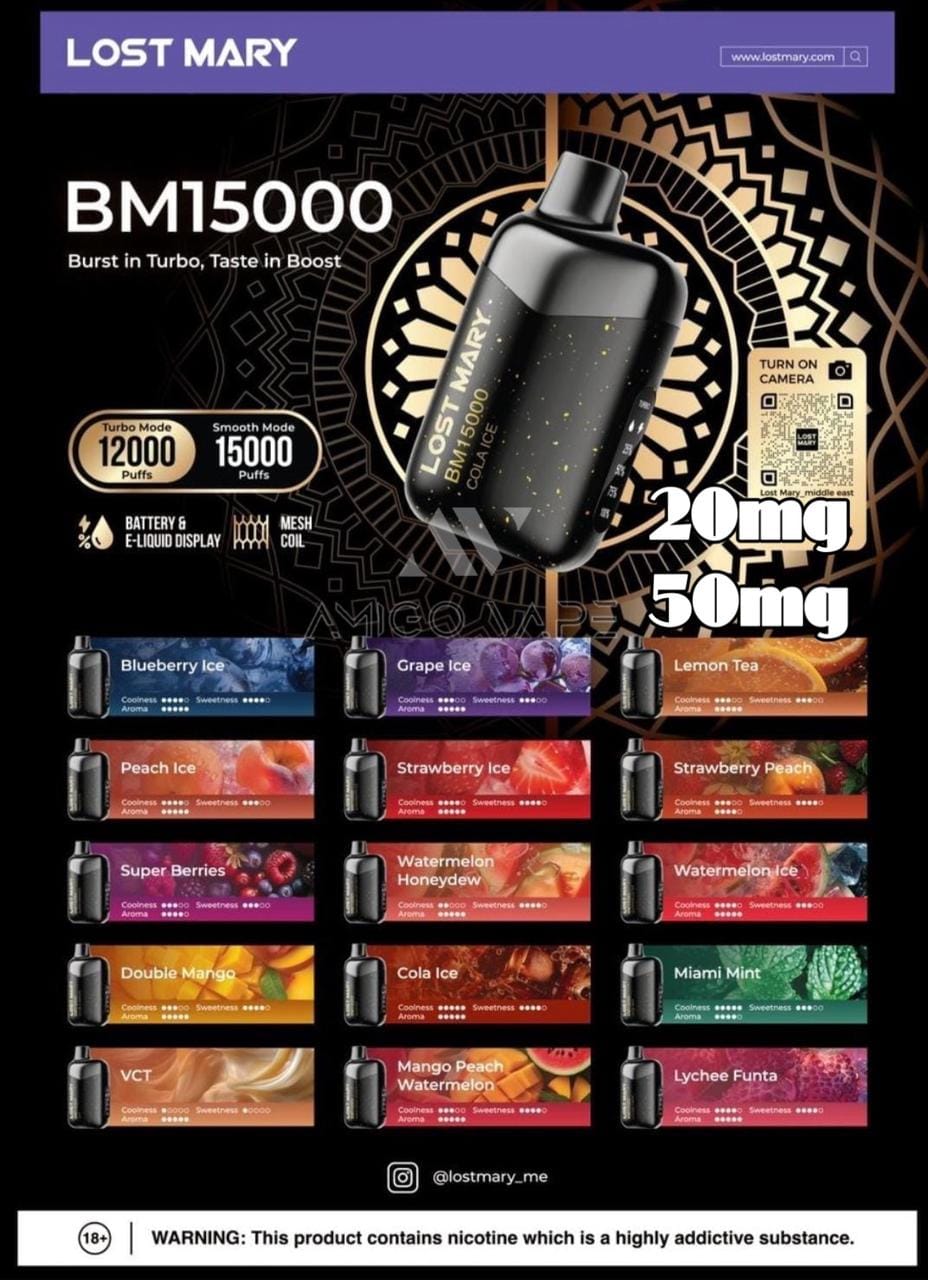 Order the Lost Mary BM15000 20 mg / 50 mg Disposable Vape online today and enjoy: